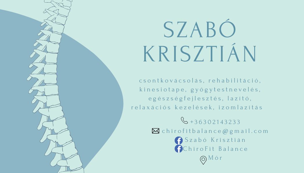 Ha a munkából adódó fájdalmak, vagy épp egy régi, öröklött problémától szenvedsz, most itt a lehetőség, hogy változtass! A gyógytestnevelés, manuálterápiás kezelések és csontkovácsolás révén a kezelések célzottan enyhítik a fájdalmat, javítják a mozgástartományt és segítenek visszanyerni a komfortos, fájdalommentes életet. Ne hagyd, hogy bármi gátolja a mindennapi mozgás örömét – jelentkezz még ma, és tapasztald meg a változást a ChiroFit Balance segítségével!